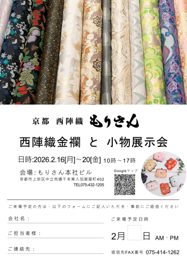 「西陣織金欄が現代のライフスタイルの中で もっと身近な織物であるように」を ものづくりのテーマに掲げる株式会社もりさん。